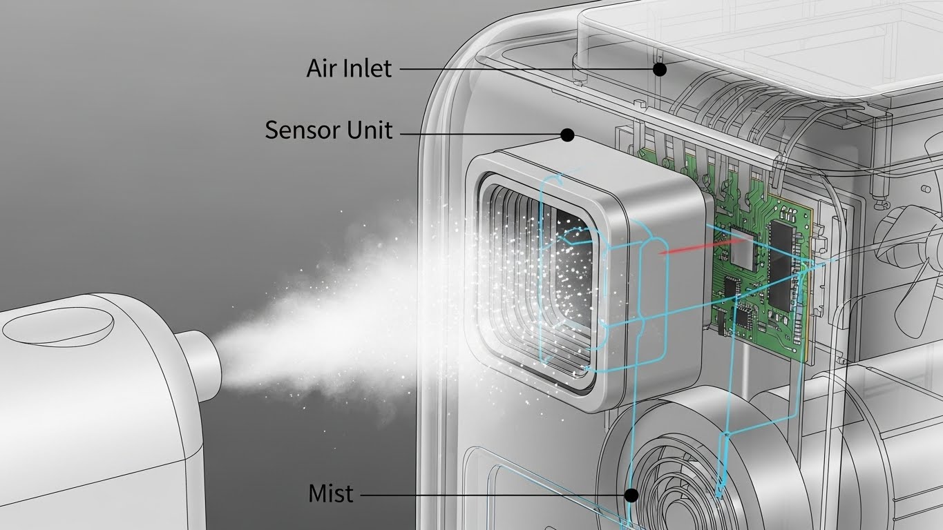 초음파 가습기에서 뿜어져 나오는 미세한 물방울을 공기청정기는 '유해한 미세먼지'로 오해합니다.